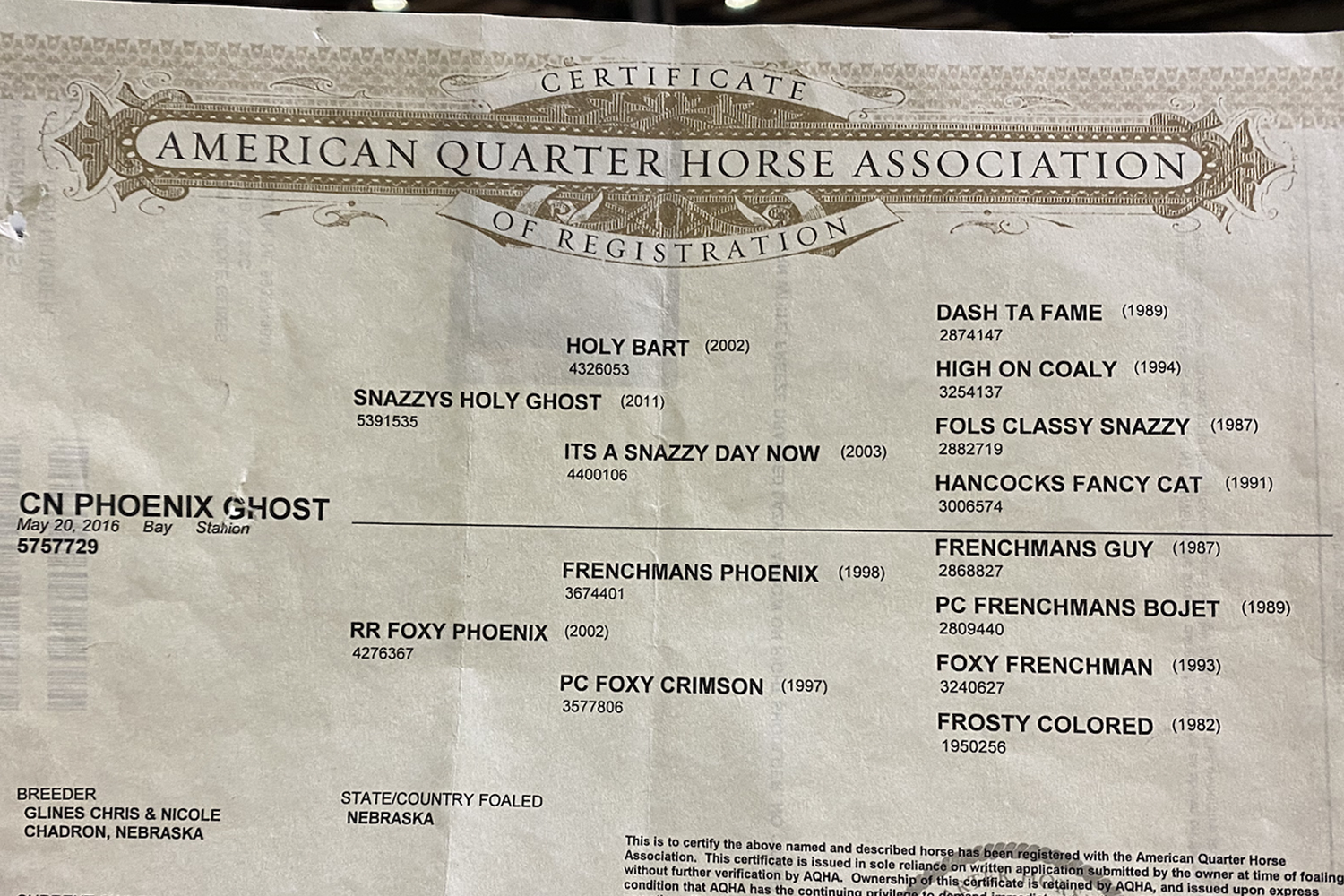 2016 AQHA gelding by an own son of Holy Bart (si 84, LTE $15k+ in the barrel pen) by Dash Ta Fame (si 113, LTE $290k+)