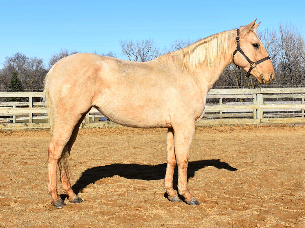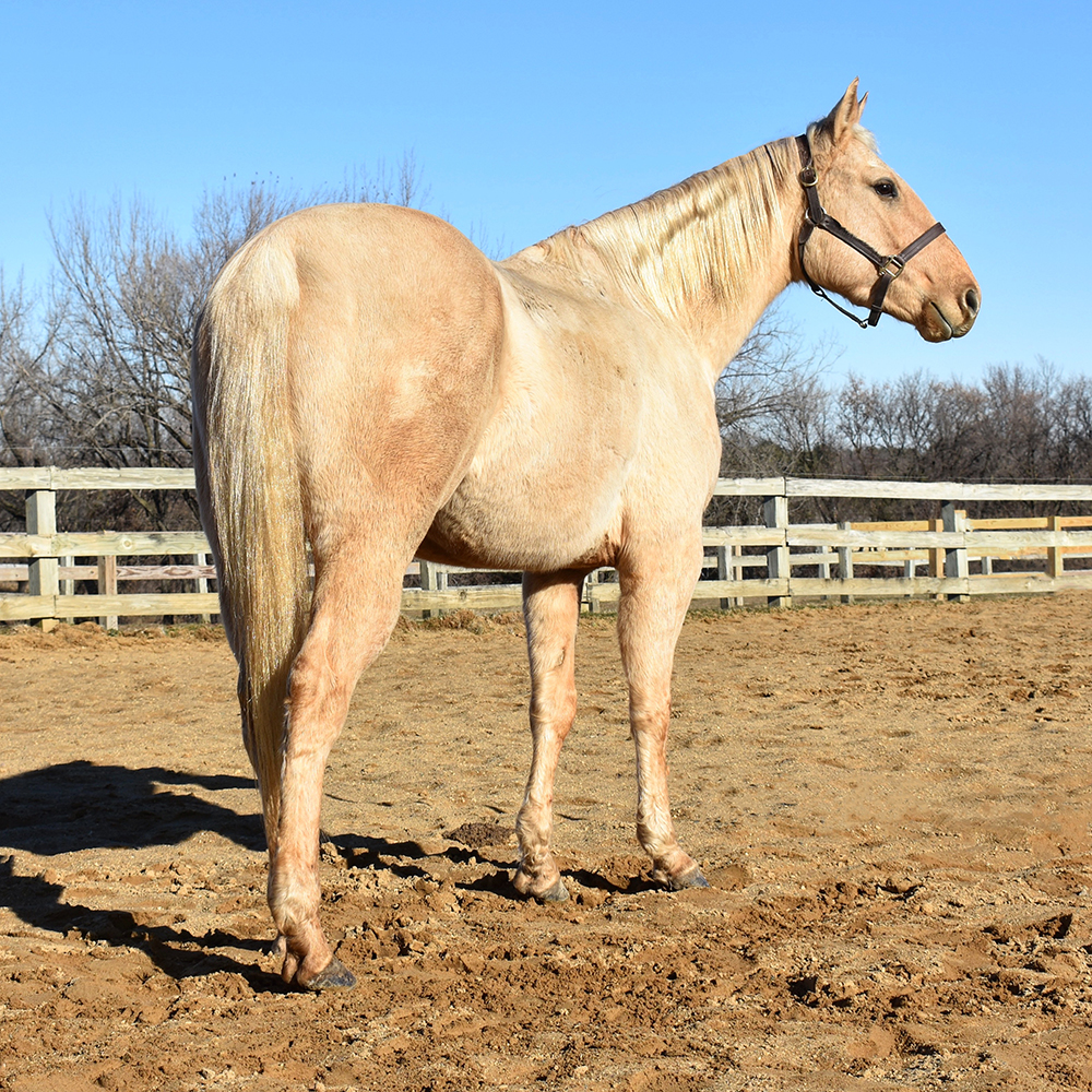 She stands 14.3 hands tall. She is 100% sound. She could use a tick of weight, but that won’t be a problem here.