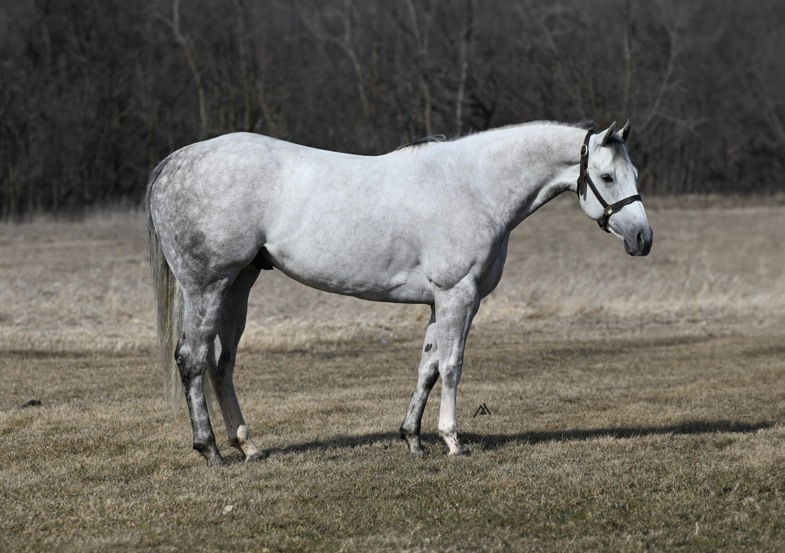 “Dealer” is a 2020 AQHA gray gelding that stands out everywhere he goes. Big, pretty, and dappled out, he’s the kind that catches your eye immediately and only gets better the more you look at him.