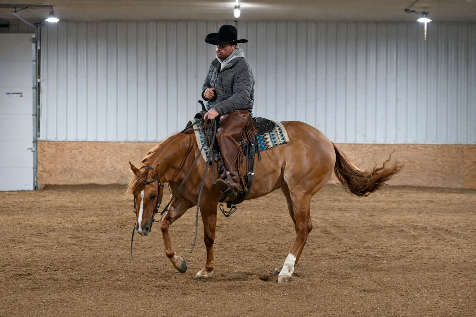 This mare has been started correctly on the reining maneuvers and has a good understanding of the basics. She is starting to spin, circle, and stop, and she’s been brought along with softness and feel. That said, she’s not built to be an Open-level reiner — and we’re honest about that. Where she really shines is in her mindset and usability, which makes her a far better candidate for ranch riding, ranch versatility, or as a solid all-around performance mare.