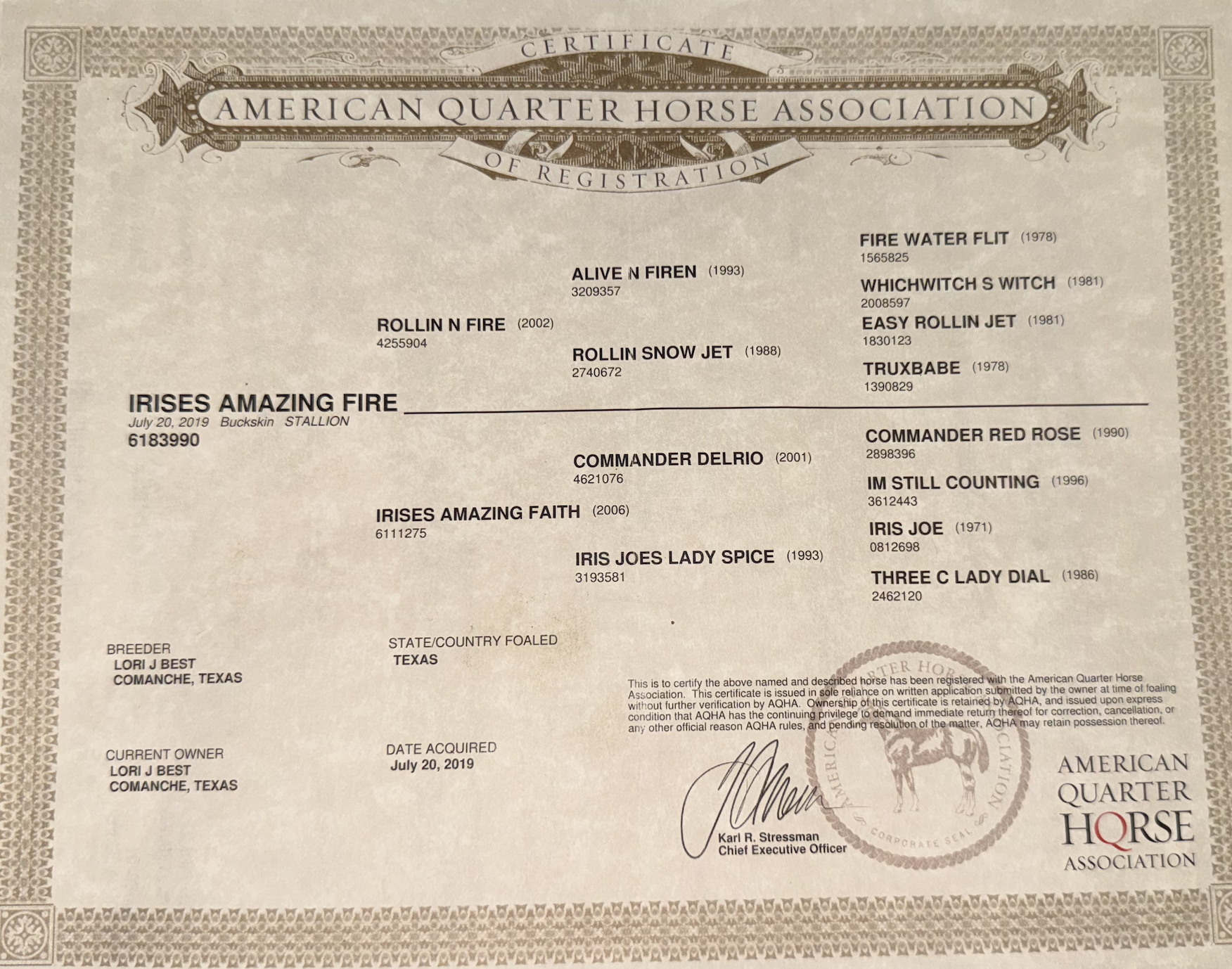 This GORGEOUS 6-year-old AQHA Buckskin gelding is sired by Rollin N Fire—a proven performer sired by the legendary Alive N Firen (1D barrel earnings over $275k, sire of 1D champions)—this guy has the power in his genetics to back up his look. Alive N Firen is by the iconic Fire Water Flit, whose legacy is cemented in the barrel world as one of the most influential sires in rodeo history. On the bottom side, Irises Amazing Faith brings solid, consistent ranch and speed blood with names like Commander Red Rose and Iris Joe—hallmarks in foundation and speed programs alike. He’s bred top to bottom to be versatile, fast, and fun.