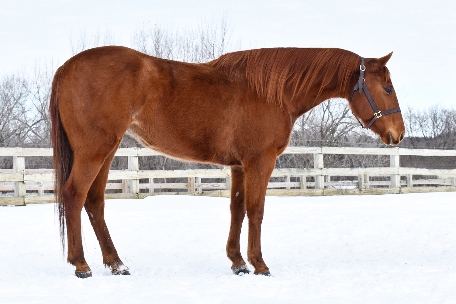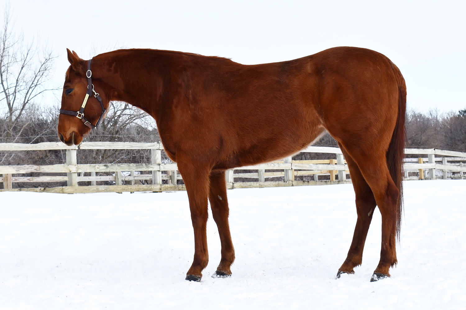 4 year old AQHA sorrel daughter of Looking For Speed (si 99) by Looking for Chicks (si 98, LTE $64k+).