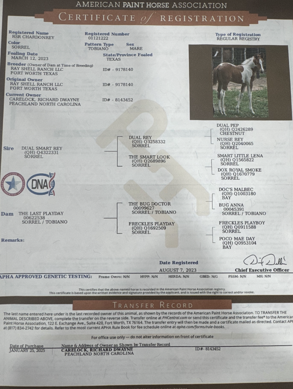 2023 APHA mare by Dual Smart Rey (LTE $330k+) out of the earning cowhorse mare “The Last Playday” by The Bug Doctor. This makes this mare a full sister to “Vincent Rey Van Gogh”, the 2023 CRCHA Mid America Int. Open Futurity Champion & the 2024 SRCHA Ft. Worth Pre Futurity L1 Open Derby Champion.