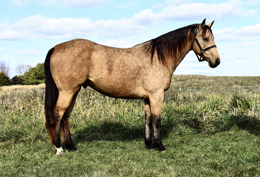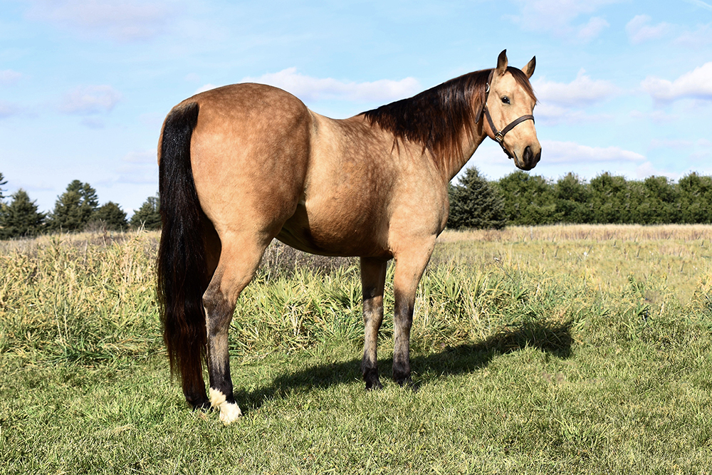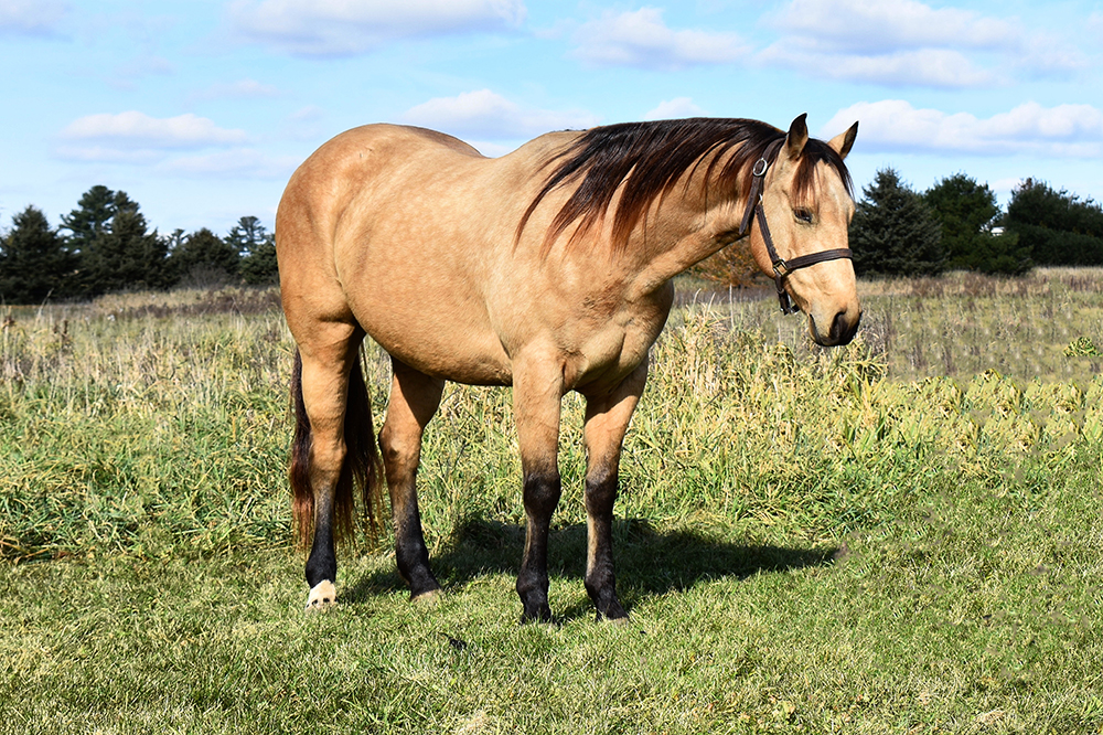 This guy is as gorgeous as one can come. Not only does he have that buckskin color people want, he is safe for anyone to climb on and take off with. He has moved cattle and worked around the ranch. He rides inside and outside the arena. He is an easy ride, and is ready for someone to add fancy buttons onto him with a job.